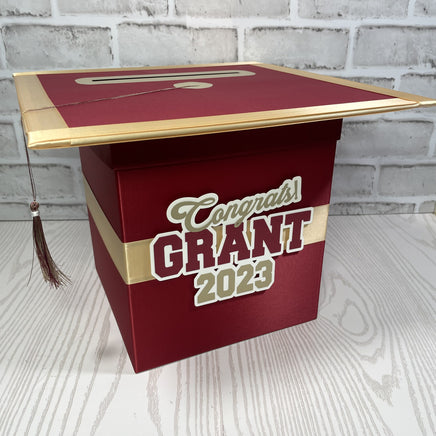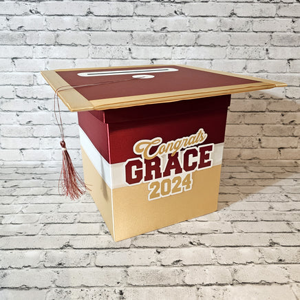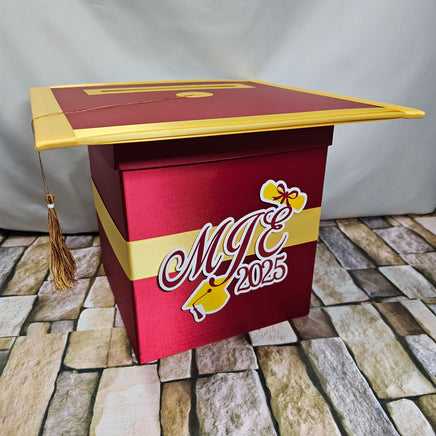 Styles 4 and 5 graduation card box with maroon as the prominent color.