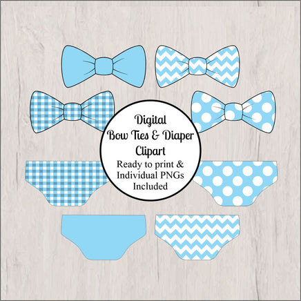 Instant download bow tie and matching diaper clipart that can be used for party decorations.