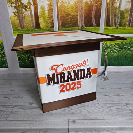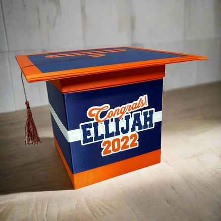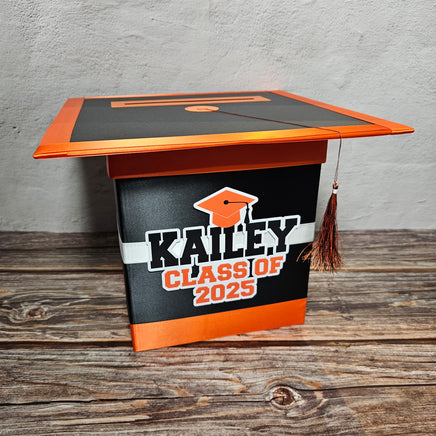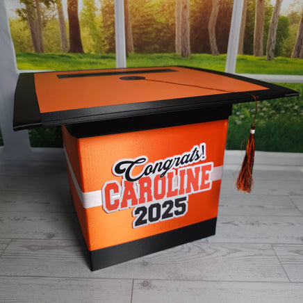 Style 3 graduation card box with orange as the themed color. Many other color combinations available to match your party.