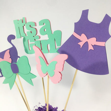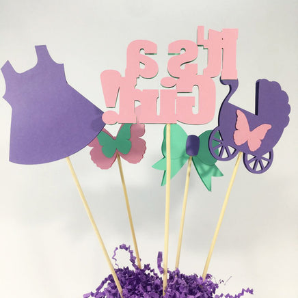 "It's a Girl" baby shower centerpiece sticks or cake toppers.