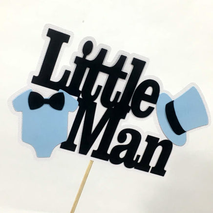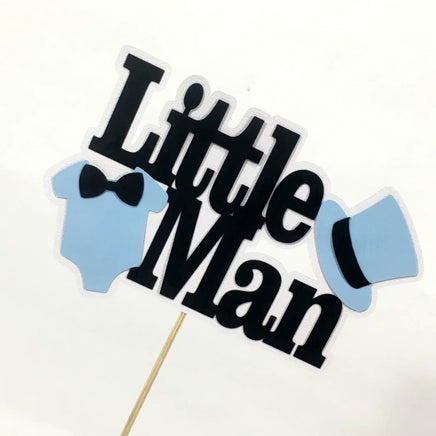 Little Man themed cake topper for boy baby showers. Can also be used as a diaper cake topper or centerpiece stick.