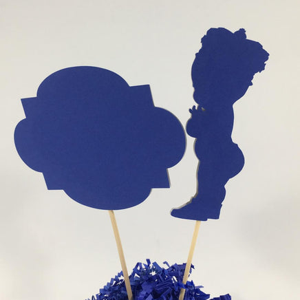 The cutouts will be attached to sticks. You can have them single-sided or double-sided. You can also choose between 4 different baby boy shades.