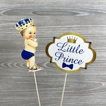 Little Prince centerpiece sticks or cake toppers perfect for a prince themed baby shower or birthday party.