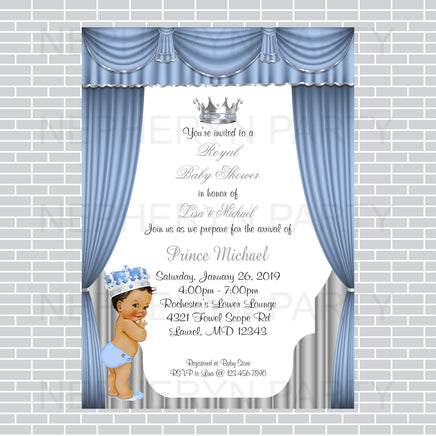 Baby blue and silver little prince themed baby shower invitation. Choose from four different boy prince images.