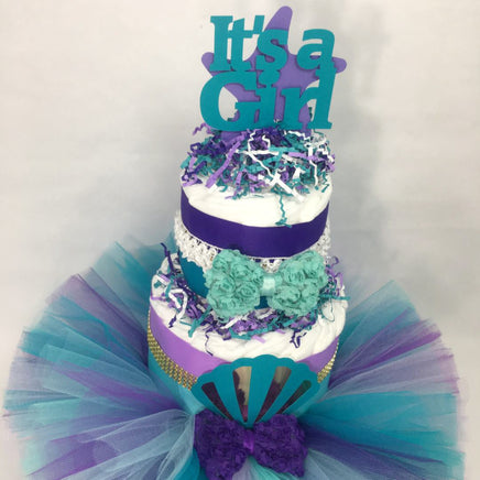 Mermaid tutu diaper cake set for a mermaid themed baby shower