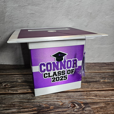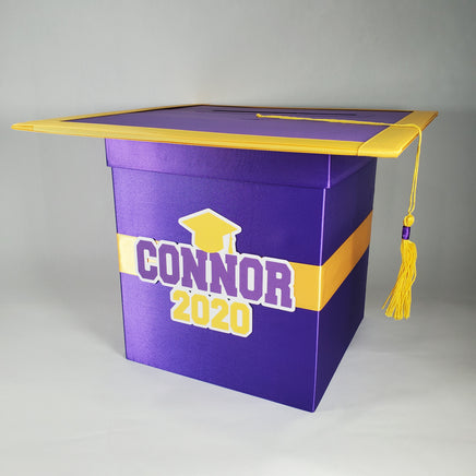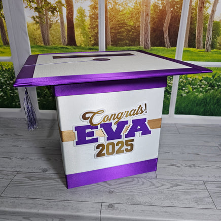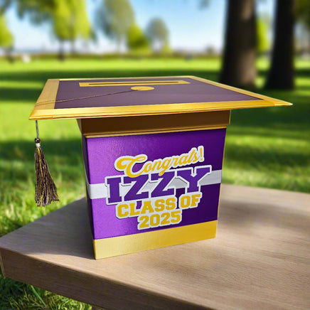 Graduation card box with rainbow purple as the main theme or within its color scheme.