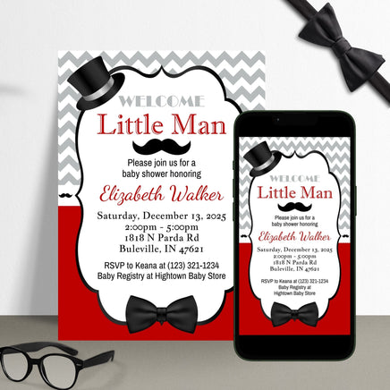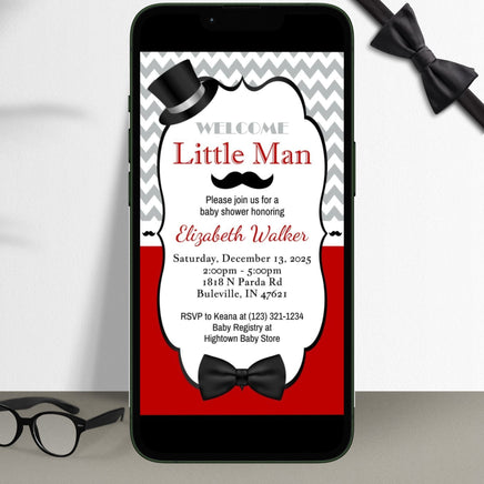 This printable little man invite set includes a 5"x7" digital invite that you can print or email. You will also receive a 1080x1920px size invite that you can send with your smart phone.