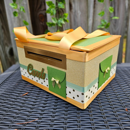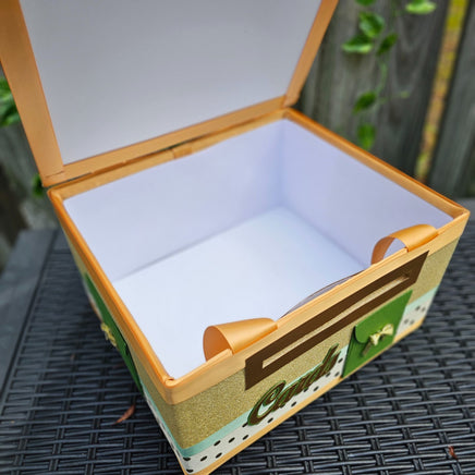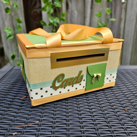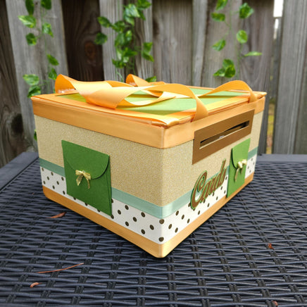 This card box design is made to look like a baby diaper bag, making it a unique addition to your next baby shower. Place it on your gift table for guest to place cards, well wishes, and money for baby and parents-to-be. After the shower, use the box to store baby keepsakes or use it as baby storage or caddy.