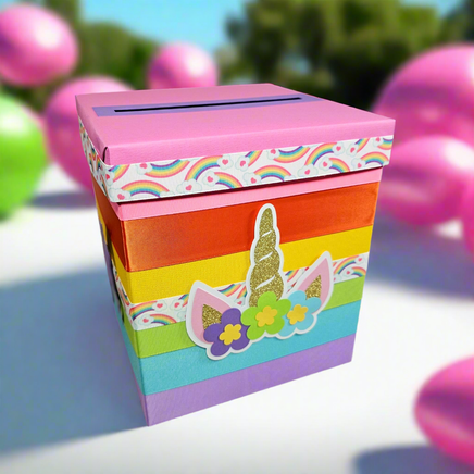 Unicorn princess baby shower card box for a girl baby shower.