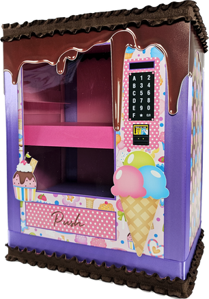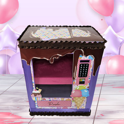 Sweets and treats themed vending machine style gift box with various uses. You can add special gifts and use this sturdy treasure as a gift box. The receiver can also us the box as a decorative display box or jewelry box. Request colors to match your party and use it as a table decoration.