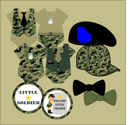Digital green camouflage clipart that you can download, print, and use for decorations at your baby shower or birthday party.