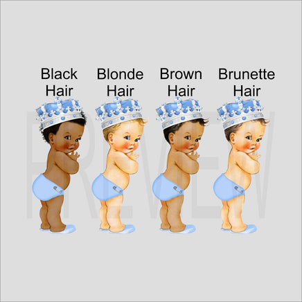 Light blue and silver little prince cupcake toppers featuring a baby boy (of your choice), a crown, and "Little Prince".