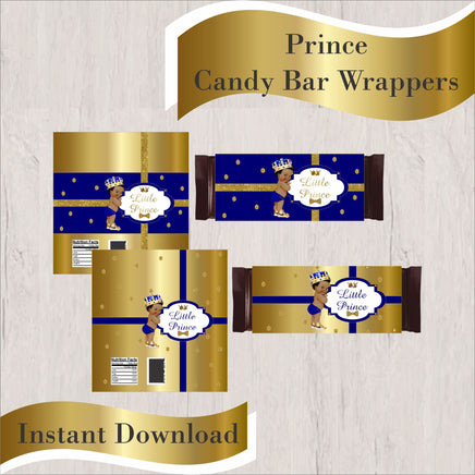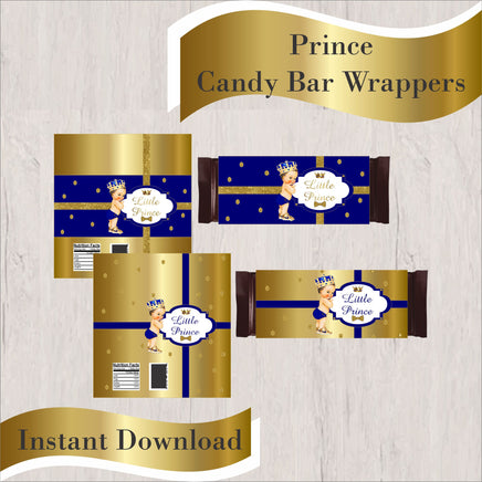Royal blue and gold little princes themed candy bar wrappers for a boy baby shower or birthday party. Customize wording for free. Four different boy prince images to choose from.