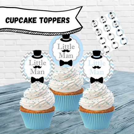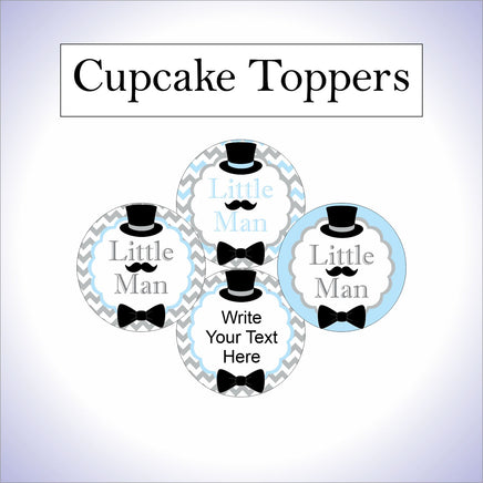 Little Man circle cupcake toppers for your baby shower or birthday party.