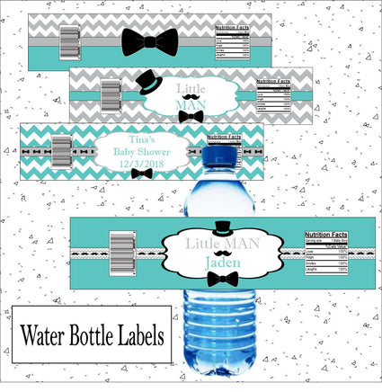 ~ Little Man water bottle labels (4/sheet) ~ 8.25x2" ~ please include custom wording