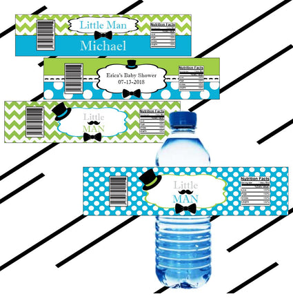 ~ 8.5x2" Little Man Water bottle labels ~ comes 4 per sheet. 2 of the labels can be edited
