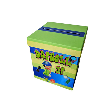 Box is 8x8x9" and can hold about 150-200 5x7" cards.