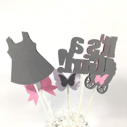 Pink & Gray It's a Girl Centerpiece Sticks SALE