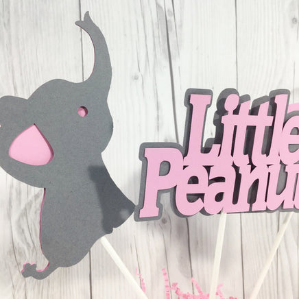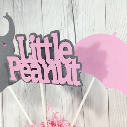 Pink and gray Little Peanut centerpiece sticks or vase toppers for a girl baby shower. These centerpiece sticks are a great addition to a bouquet centerpiece.