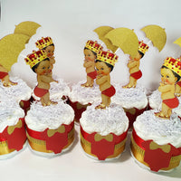 You can select to have the centerpieces single-sided (shirt only on front and baby boy and umbrella one-sided) or double-sided (shirt on front and back and baby boy and umbrella two-sided). 4 different baby boys to choose from.