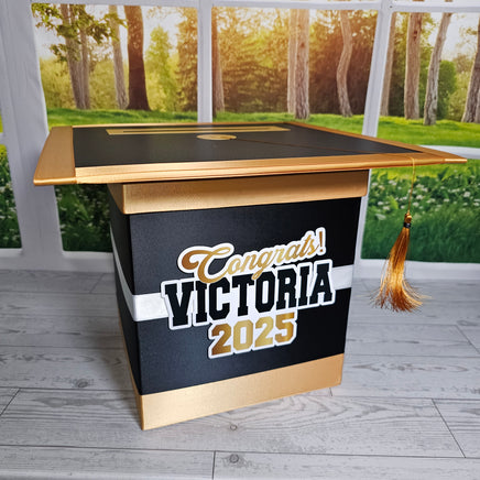 Style 3 graduation card box with black as the base of the color scheme.