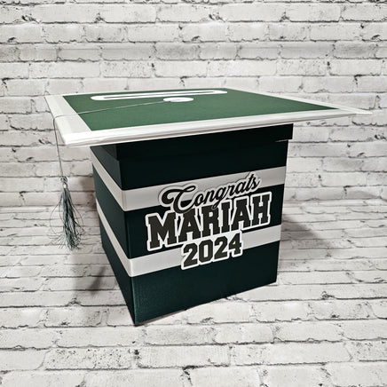Style 2 graduation party card box with  hunter green being the prominent color. Use the color chart to choose your secondary color if the one you want is not already shown.