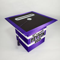 Regal purple, black, and white graduation cap style foldable card box with a tassel. Box is great for cards up to 5"x7", money, notes, and other well wishes. The top is made from chipboard and paper and can be used as a guest signing "sheet". Please consider the size of this box and the needs of your party. To avoid mistakes and misunderstandings, please read listing carefully. If something is not clear, please contact me with any questions.