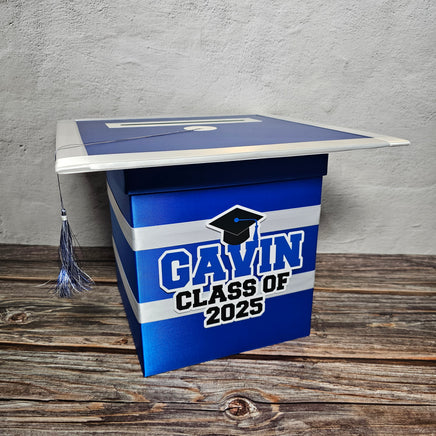 Style 2 graduation card box with royal blue as the prominent color. Please use the color chart to choose your secondary color if one is not already shown.