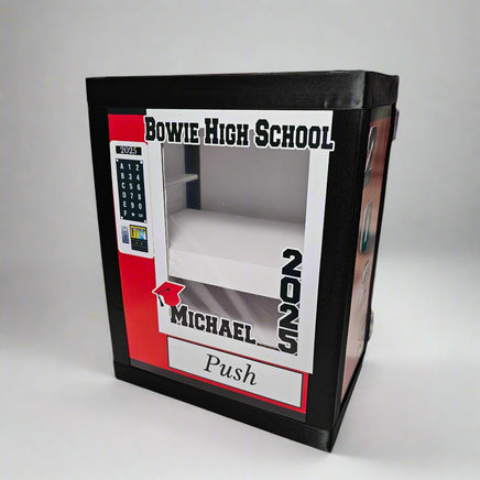 Graduation themed vending machine style gift box with various uses. You can use this sturdy box as a gift box, table decoration at a party, decorative display box, jewelry box, perfume or cologne display, storage box, and more.