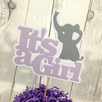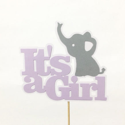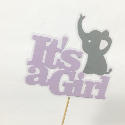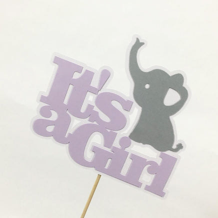 It's a girl, elephant themed cake topper for girl baby showers. Can also be used as a diaper cake topper or centerpiece stick.
