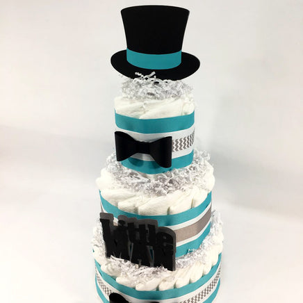 Teal, Gray, & Black Little Man Baby Shower Diaper Cake SALE