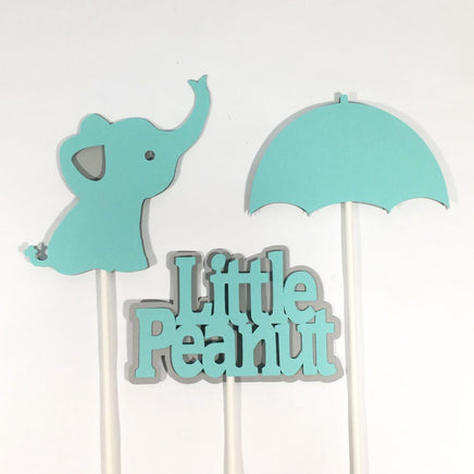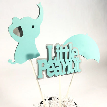 Robin's egg blue and light gray Little Peanut centerpiece sticks or cake toppers for a boy, girl, or gender neutral baby shower. These centerpiece sticks are a great addition to a bouquet centerpiece.