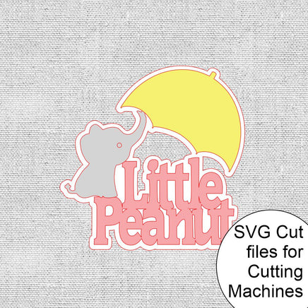 Instant digital download Little Peanut SVG cutouts that you can use to make your own decorations. The cutouts include a "Little Peanut" sign, an umbrella, an elephant, and a backing for the pieces to be glued to.