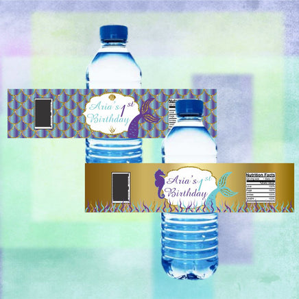 Mermaid themed water bottle labels for a birthday party or baby shower.