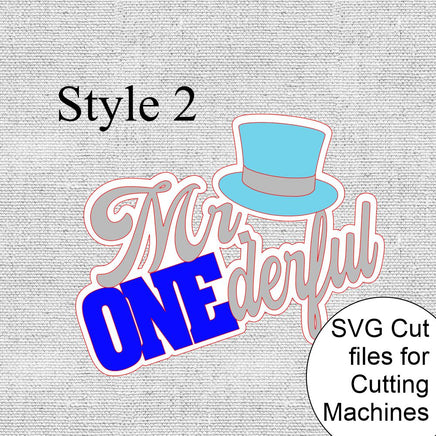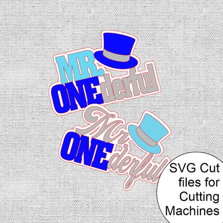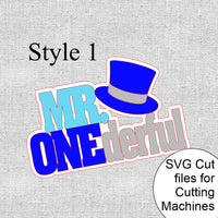 Instant digital download Mr. Onederful SVG cutouts that you can use to make your own decorations. Choose from 2 different styles. Each style includes a "Mr." sign, a "ONE" sign, a "derful" sign, a hat with brim, and back to glue the pieces on.